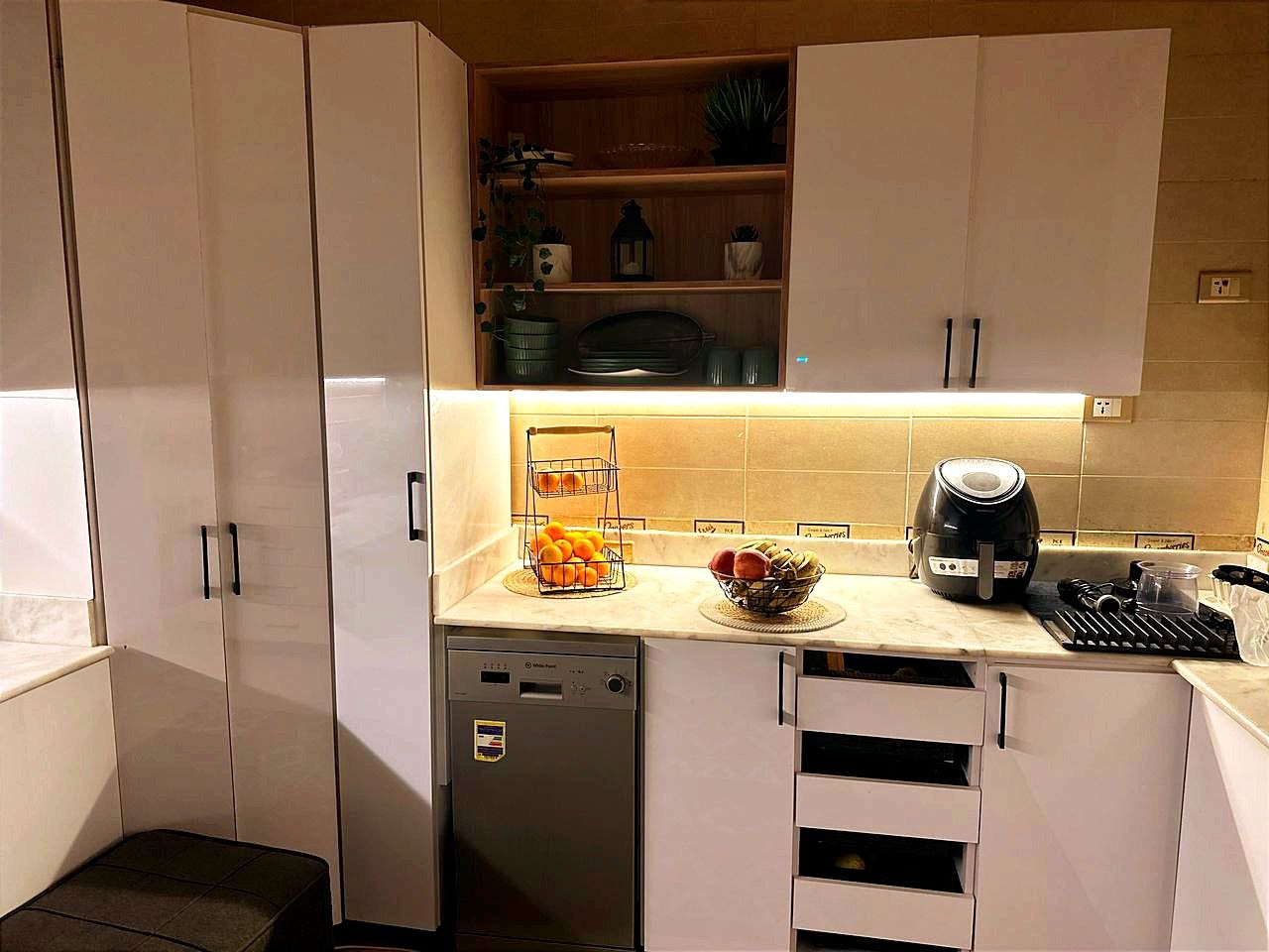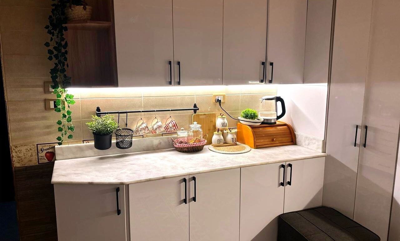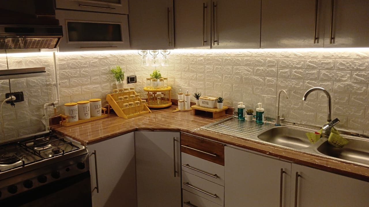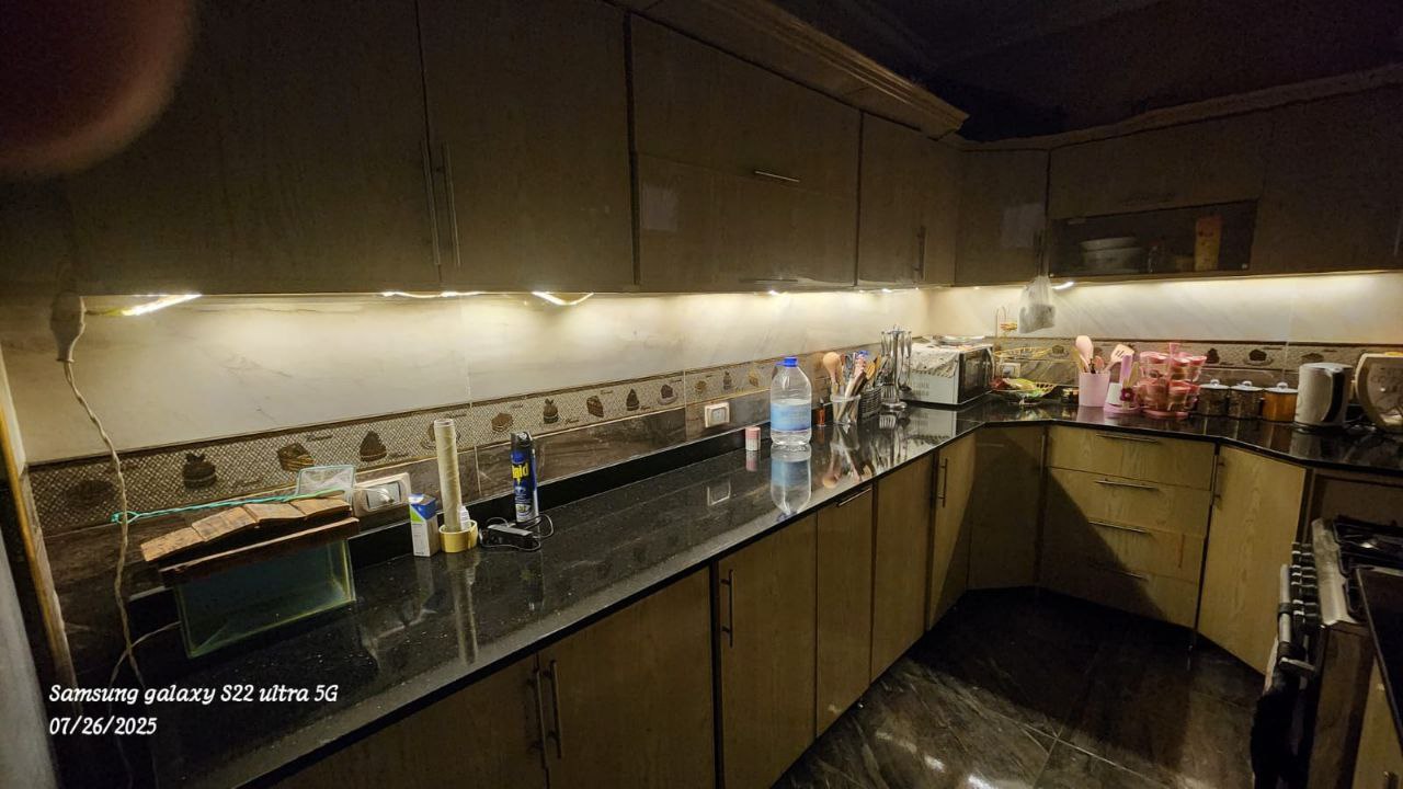 قبل التركيب، المطبخ بيبقى شكله عادي، النور مش مبين جمال الرخامة ولا تفاصيل الوحدات ونظافة الشغل. لكن بعد البروفايل LED، الإضاءة بتتوزع بهدوء وتظهر كل تفصيلة في مكانها، وتحول المطبخ لإحساس أهدى وأشيك وأرتب بكتير. الموضوع مش بس شكل حلو، ده فرق بيتعاش كل يوم، وكل مرة تدخلي فيها المطبخ هتحسي فعلاً إنه بقى عالم تاني خالص