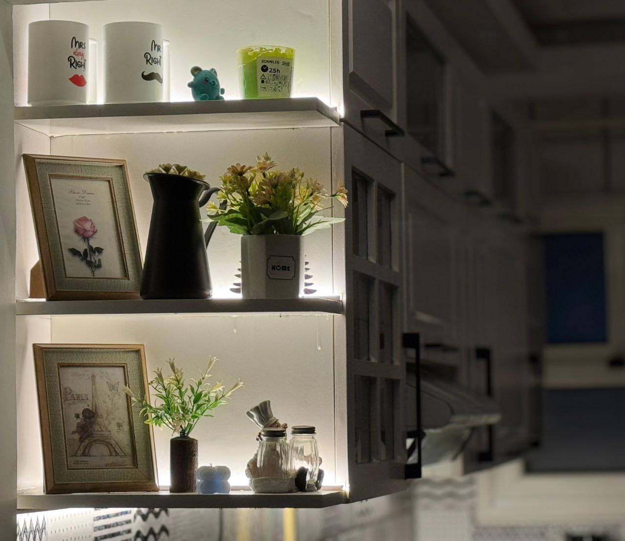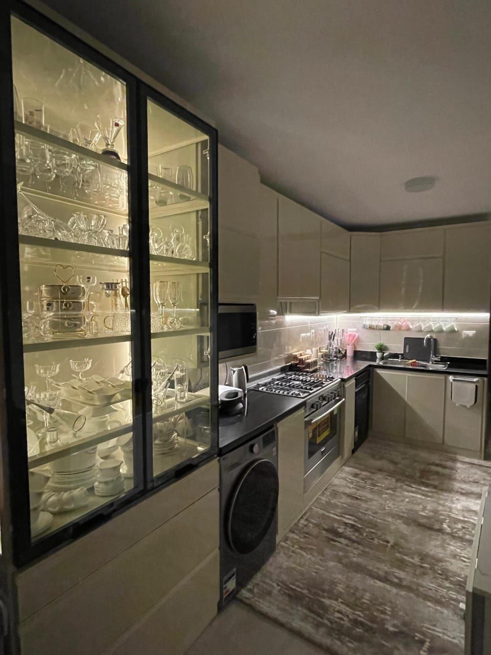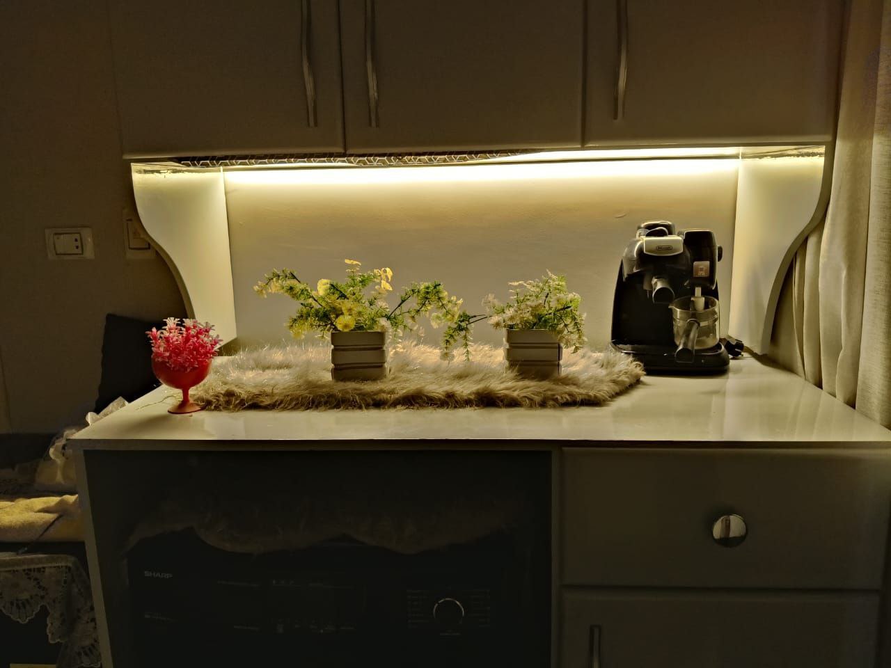قبل التركيب، المطبخ بيبقى شكله عادي، النور مش مبين جمال الرخامة ولا تفاصيل الوحدات ونظافة الشغل. لكن بعد البروفايل LED، الإضاءة بتتوزع بهدوء وتظهر كل تفصيلة في مكانها، وتحول المطبخ لإحساس أهدى وأشيك وأرتب بكتير. الموضوع مش بس شكل حلو، ده فرق بيتعاش كل يوم، وكل مرة تدخلي فيها المطبخ هتحسي فعلاً إنه بقى عالم تاني خالص